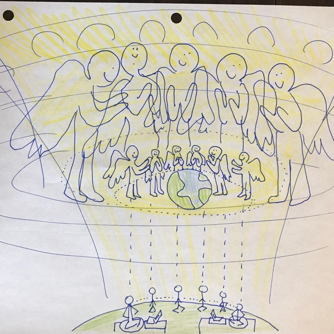 As our fields hone in together in shared openness to the Divine, we are like an open portal made of all of our bodies together as one body, reaching with devotion and trust to the Heaven Fields - to Reality beyond egoic consciousness. Together we have greater precision, access, and depth.